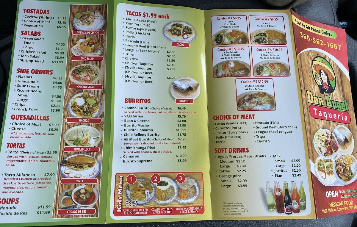 Welcome to Don Angel Taqueria - Longview, a gem nestled in the heart of Longview, WA. This taqueria offers a vibrant menu that celebrates authentic Mexican cuisine, making it a local favorite. Breakfast aficionados can indulge in hearty burritos, with options like the 3 Meat Burrito or the flavorful Machaca and Chorizo, each priced at just $9.49.